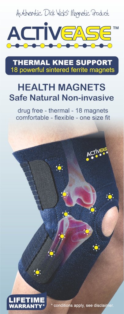 Superior knee support that combines compression & long-term support of seamless neoprene, with the relieving therapy of Dick Wicks Power Magnets.