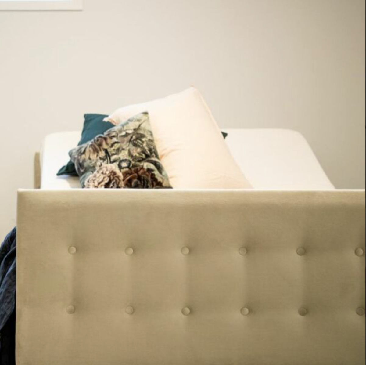 The Amsterdam Footboard is a modern square edge design with a euro button pattern. Complete the look in the bedroom with matching colours and fabrics. Footboards can prevent the bedding from falling off when the bed is functioning. Mounted to the bed using brackets and screws.