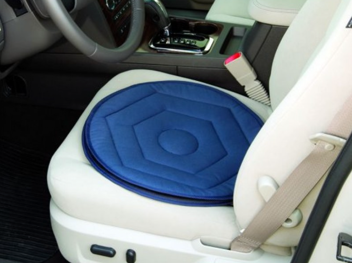 Swivel cushion is a soft, flexible swivel seat with a unique design that allows for easy transfer in and out of a vehicle. Simply place the cushion on the seat and enjoy 360 degree rotation to make getting into or out of the car easier and more comfortable.