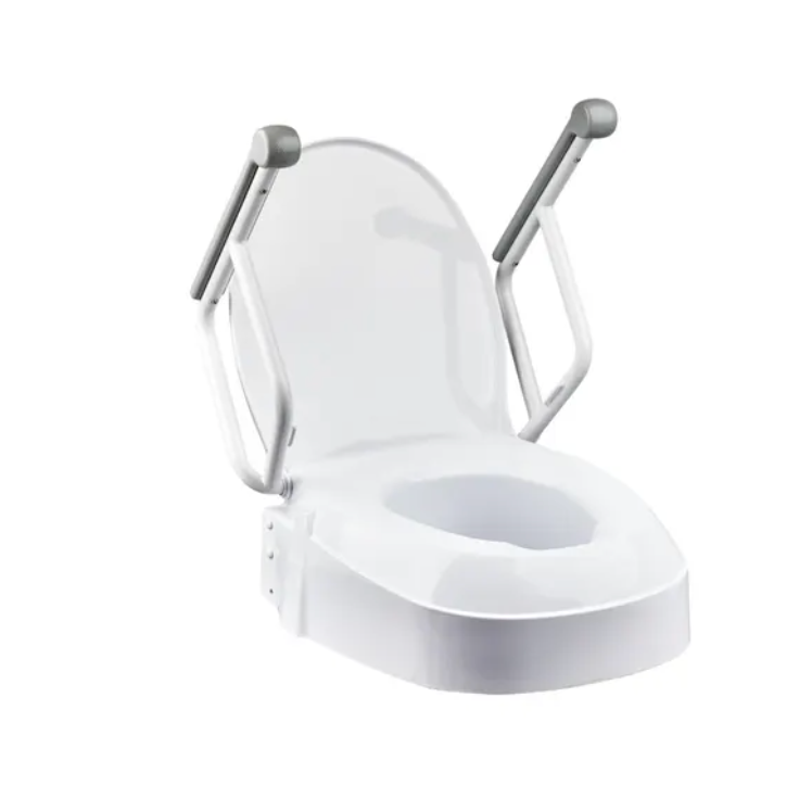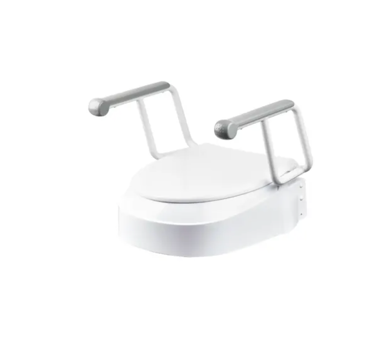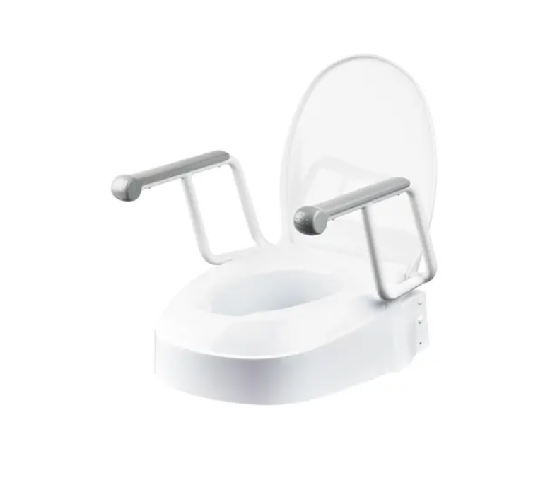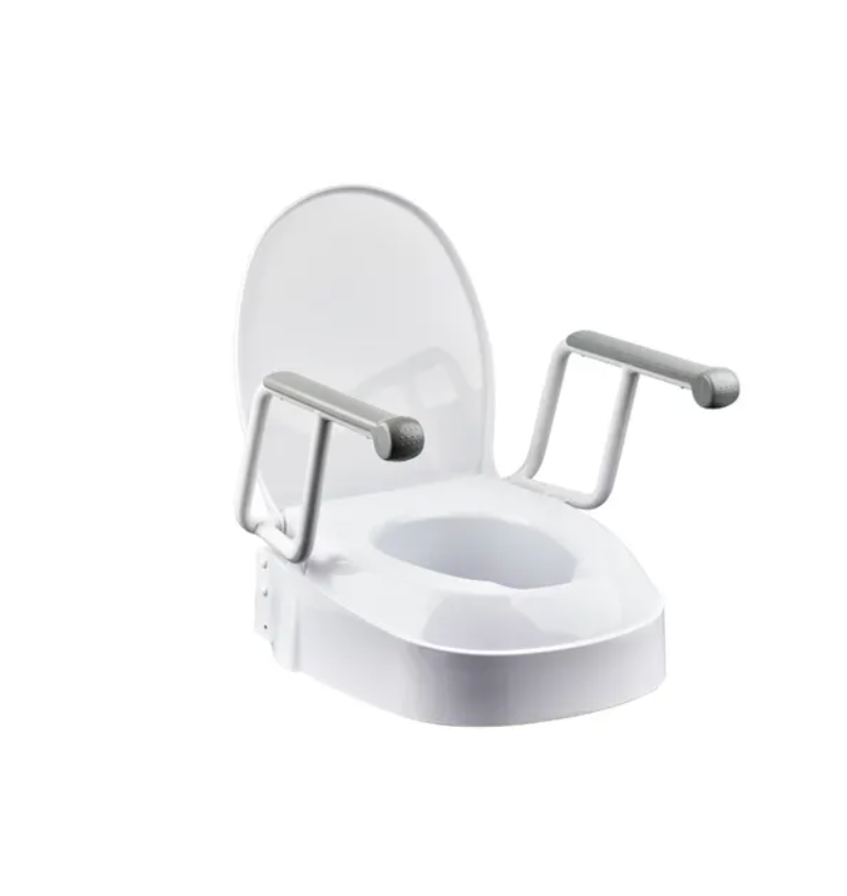 The Raised Toilet Seat with Armrests fosters independence, notably by compensating for impaired movements. This makes it a helpful aid for seniors, people with disabilities, and patients post-hip replacement surgery. Also great as a gift for elderly parents or grandparents. Comes with a lid that can be removed for easy cleaning. The versatile design includes a choice of three fixed seat heights to suit the user.